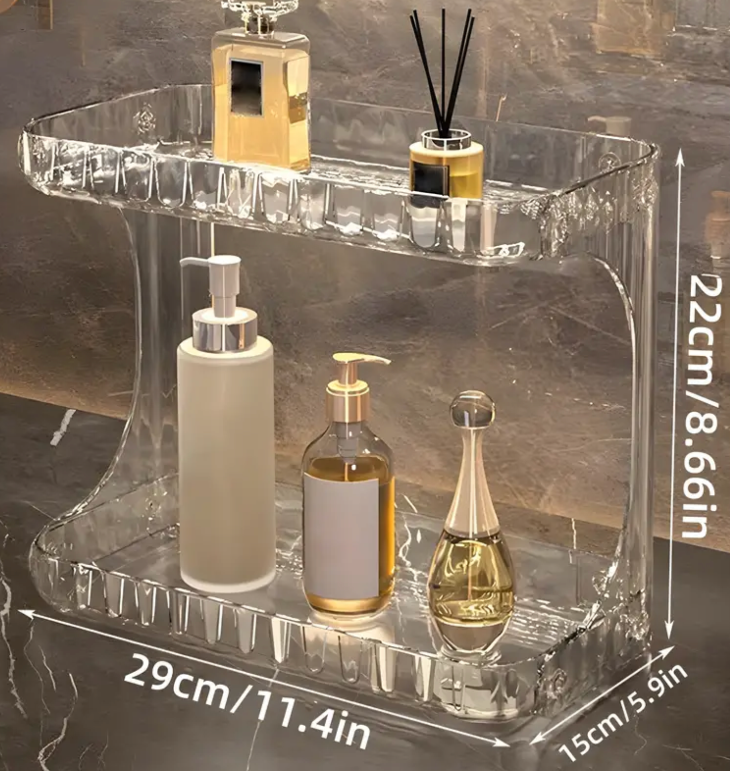 Fabricado en acrílico de alta calidad, este organizador es resistente y duradero, con una apariencia moderna y limpia que se adapta a cualquier decoración. El diseño de dos niveles maximiza el espacio de almacenamiento, permitiéndote mantener tus artículos ordenados y a la vista. Equipado con ventosas de alta resistencia, nuestro organizador se adhiere firmemente a una variedad de superficies, como azulejos, vidrio y metal. El acrílico transparente se puede lavar con facilidad y se mantiene libre de arañazos con el cuidado adecuado. Las ventosas están diseñadas para soportar el peso de tus artículos, manteniendo el organizador en su lugar incluso con el uso diario.