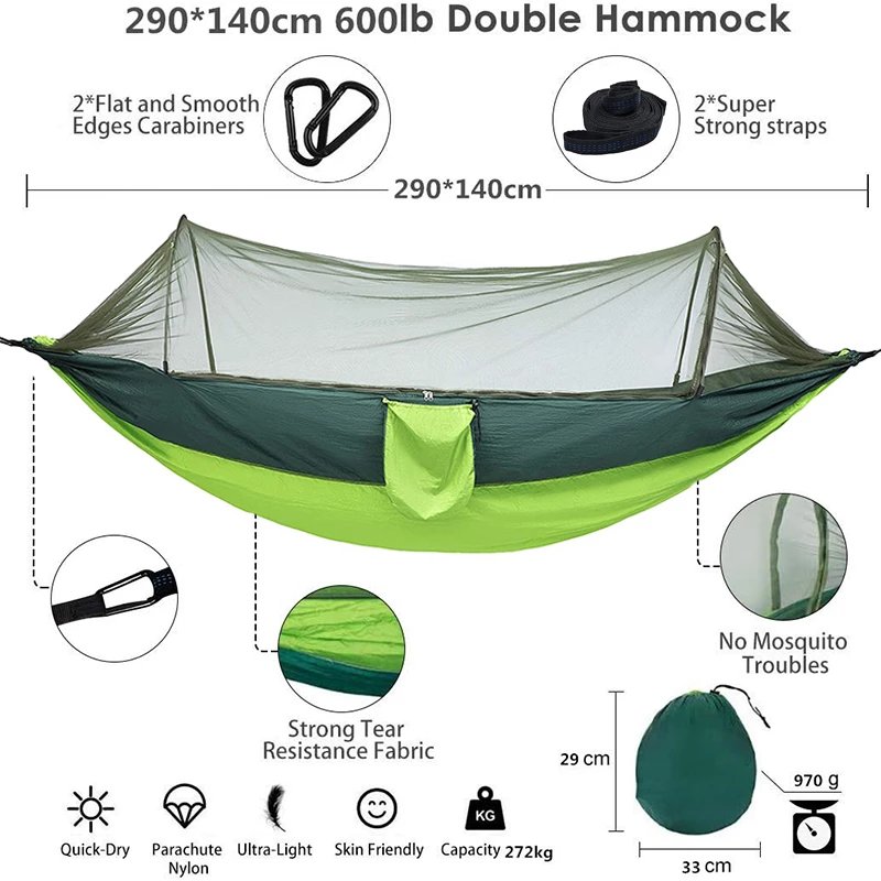 Descubre la máxima comodidad y protección en tus aventuras al aire libre con nuestra Hamaca Portátil con Toldillo.